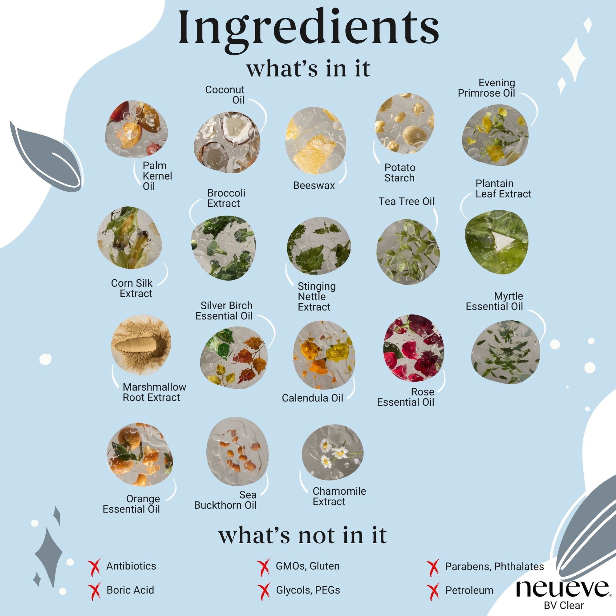 NeuEve BV Clear does NOT contain antibiotics or toxic poisons like boric acid.