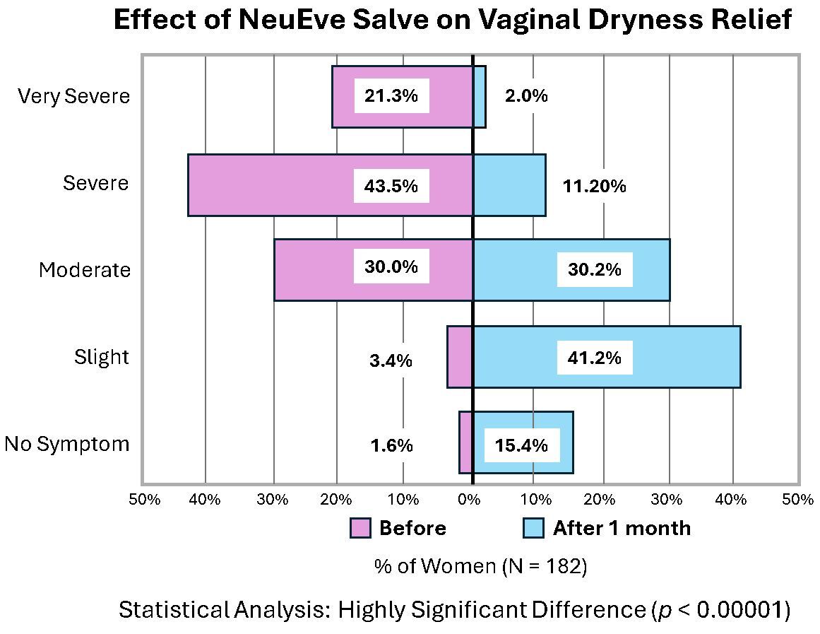 Empty the bladder. Wash with soap and water. Gently apply a tiny amount of the balm with a finger to the vulvar once daily at bedtime. To start, apply a 1/4 of a dime size. If no irritation, gradually increase the amount but not exceed a dime size. After application of the balm, you may feel the moisture in 10-20 minutes. One jar of 20 grams (0.7 oz) may last 3-6 months. Can be used in combination with the NeuEve suppository. If you are >70 or a sensitive type, you may be sensitive to the regular NeuEve Salve. You may try the milder Sensitive Cream.